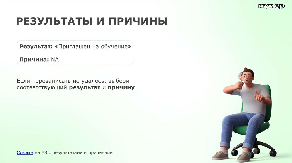 РЕЗУЛЬТАТЫ И ПРИЧИНЫРезультат: «Приглашен на обучение»
