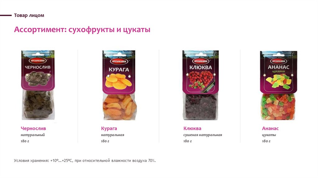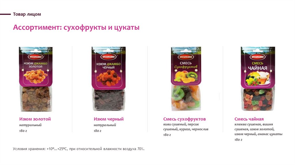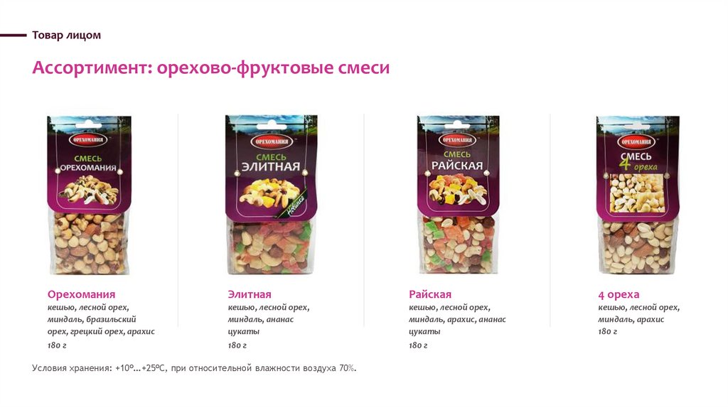 Товар лицомАссортимент: орехово-фруктовые смеси