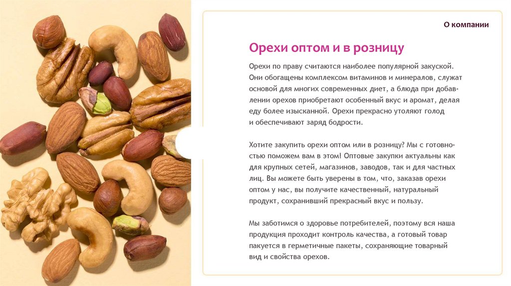 лиц. Вы можете быть уверены в том, что, заказав орехи