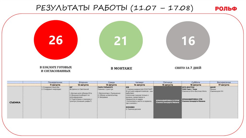 РЕЗУЛЬТАТЫ РАБОТЫ (11.07 – 17.08)