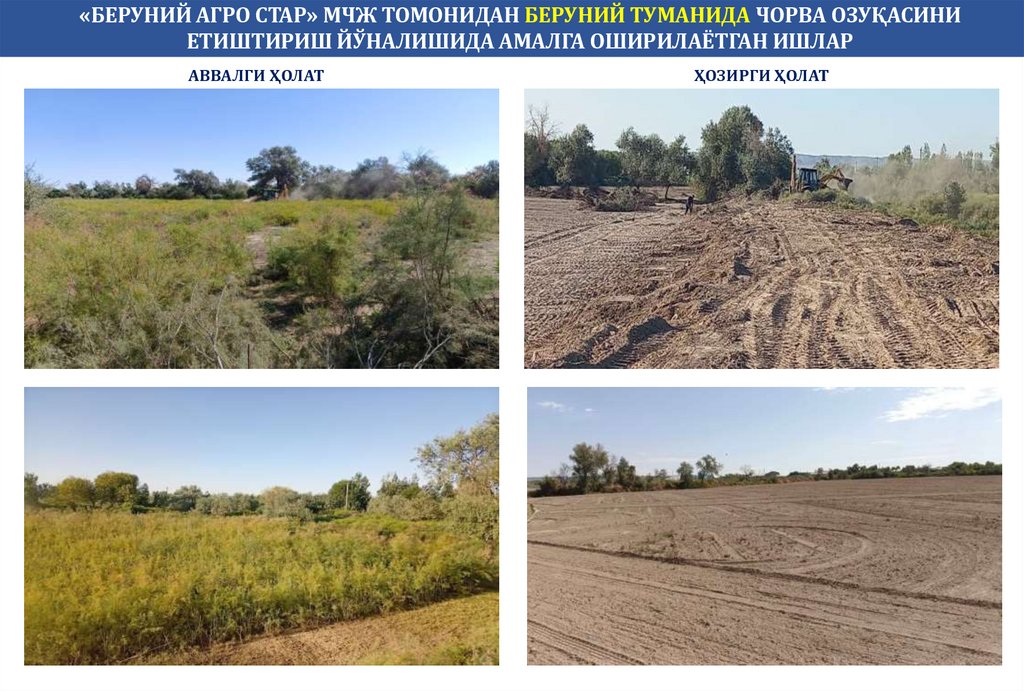 «БЕРУНИЙ АГРО СТАР» МЧЖ ТОМОНИДАН БЕРУНИЙ ТУМАНИДА ЧОРВА ОЗУҚАСИНИЕТИШТИРИШ ЙЎНАЛИШИДА АМАЛГА ОШИРИЛАЁТГАН ИШЛАР