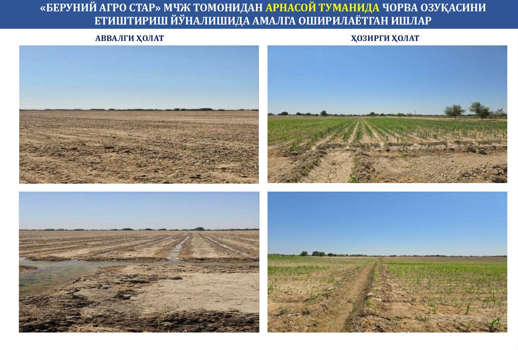 «БЕРУНИЙ АГРО СТАР» МЧЖ ТОМОНИДАН АРНАСОЙ ТУМАНИДА ЧОРВА ОЗУҚАСИНИЕТИШТИРИШ ЙЎНАЛИШИДА АМАЛГА ОШИРИЛАЁТГАН ИШЛАР