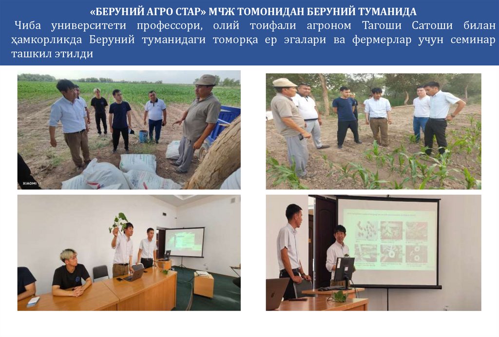 «БЕРУНИЙ АГРО СТАР» МЧЖ ТОМОНИДАН БЕРУНИЙ ТУМАНИДАЧиба университети профессори, олий тоифали агроном Тагоши Сатоши билан