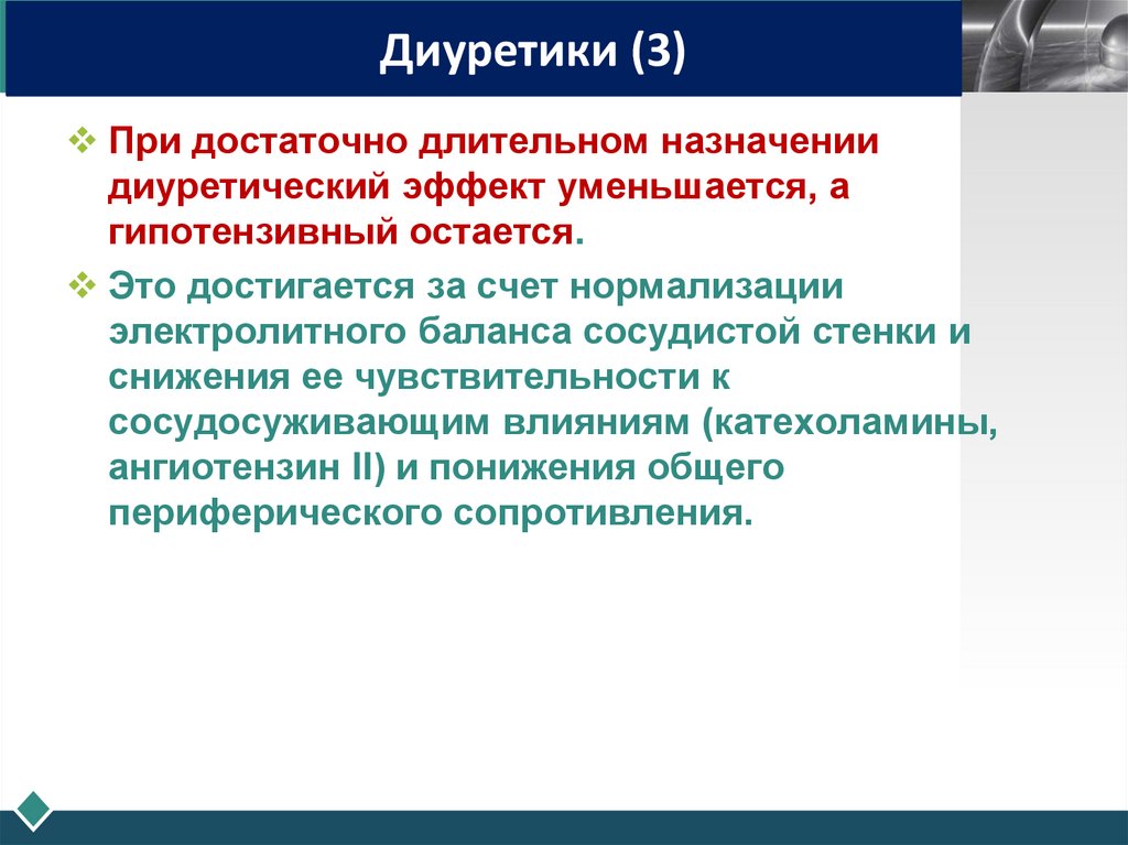 Диуретики (3)При достаточно длительном назначении
