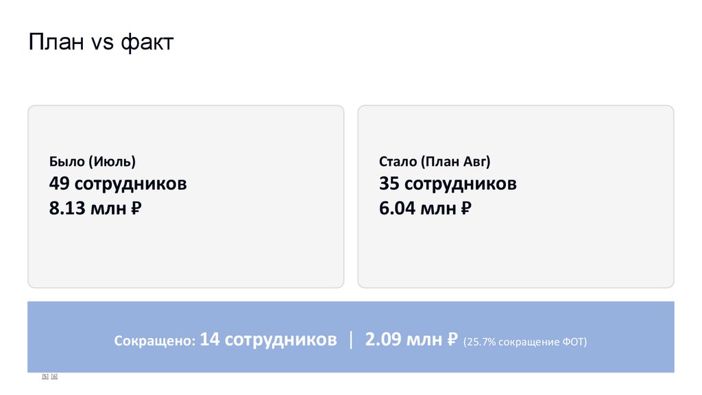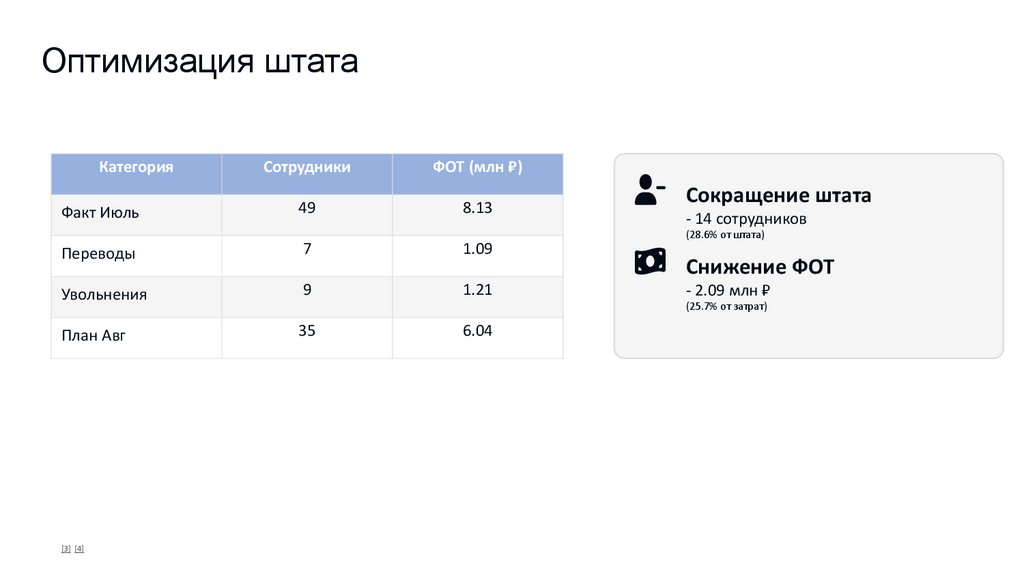 Сокращено: 14 сотрудников | 2.09 млн ₽ (25.7% сокращение ФОТ)