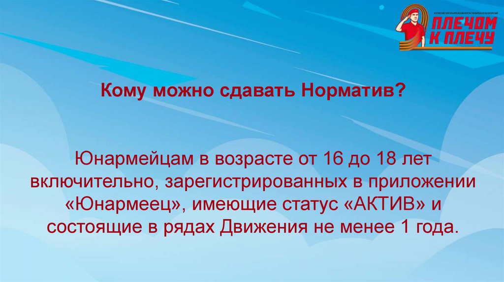 Кому можно сдавать Норматив?Юнармейцам в возрасте от 16 до 18 лет