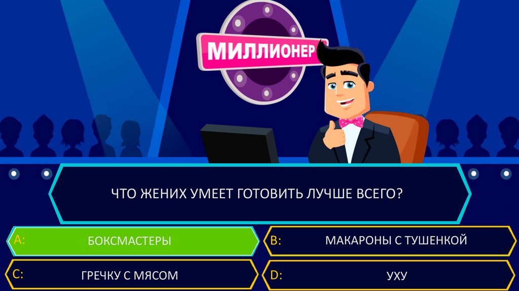 ЧТО ЖЕНИХ УМЕЕТ ГОТОВИТЬ ЛУЧШЕ ВСЕГО?A: