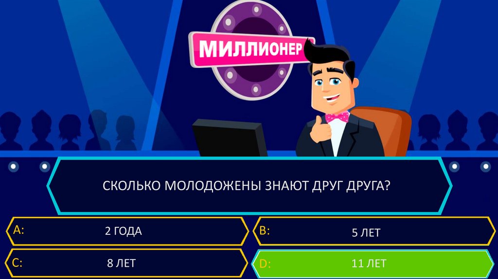 СКОЛЬКО МОЛОДОЖЕНЫ ЗНАЮТ ДРУГ ДРУГА?A: