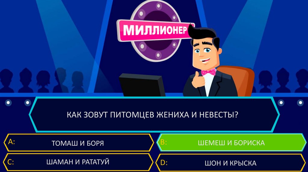 КАК ЗОВУТ ПИТОМЦЕВ ЖЕНИХА И НЕВЕСТЫ?A: