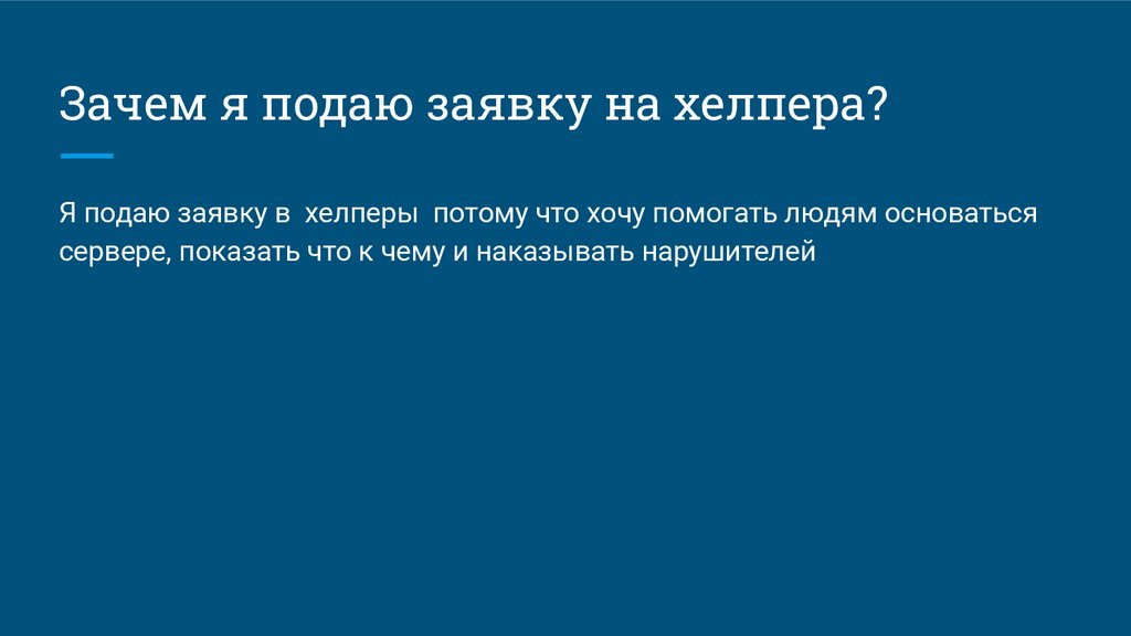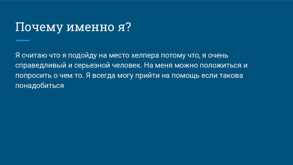 Почему именно я?Я считаю что я подойду на место хелпера потому что, я очень