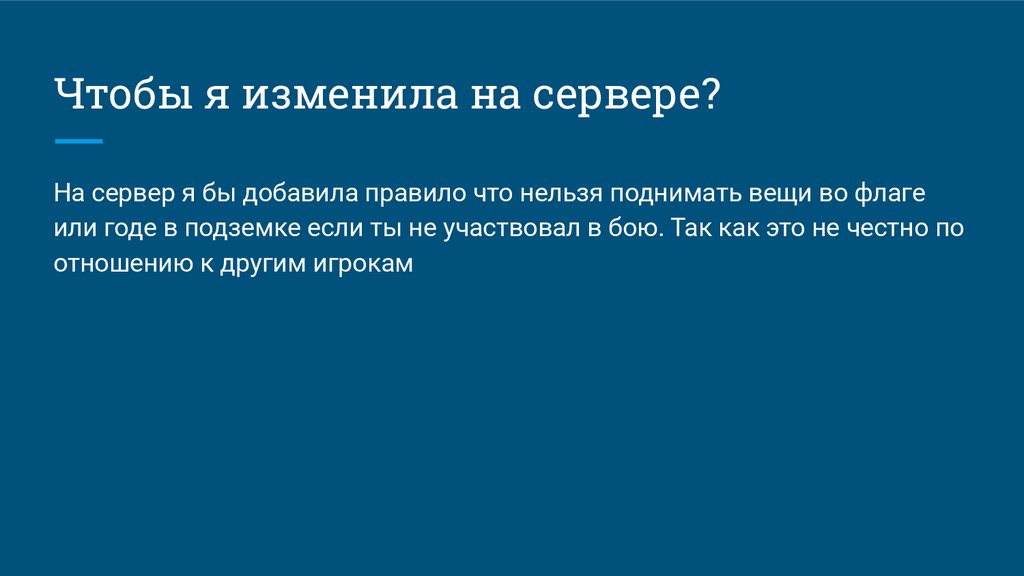 Чтобы я изменила на сервере?На сервер я бы добавила правило что нельзя поднимать вещи во флаге