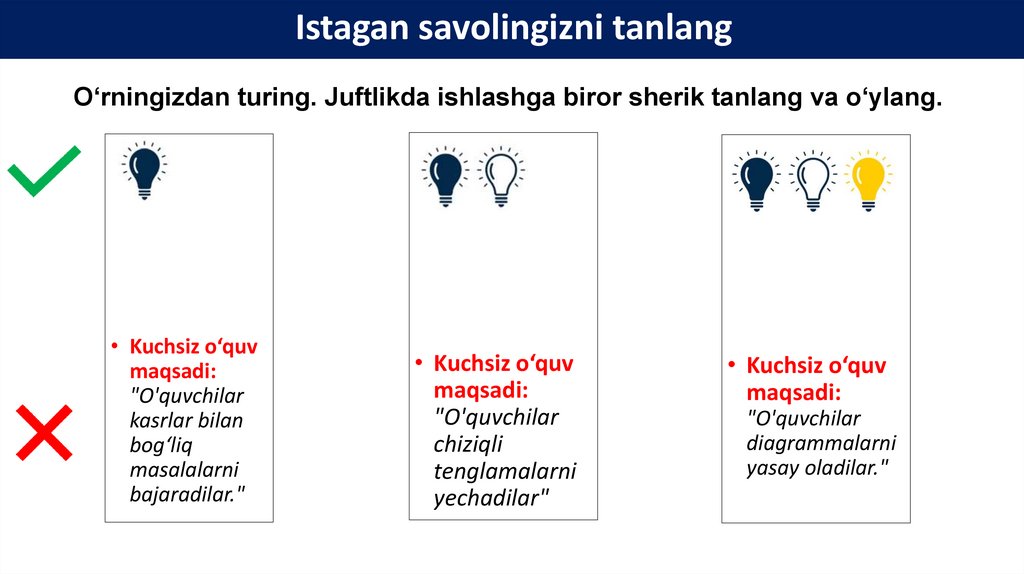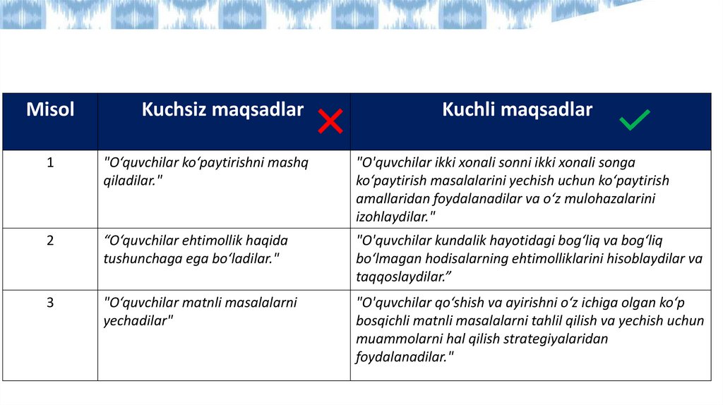 • Kuchsiz o‘quv maqsadi: