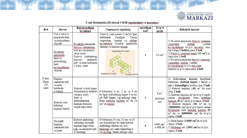 YANGI BAHOLASH TIZIMI38. UMUMTA’LIM MAKTABLARI UCHUN BALLARNI BAHOGA O‘TKAZISH SHKALASI