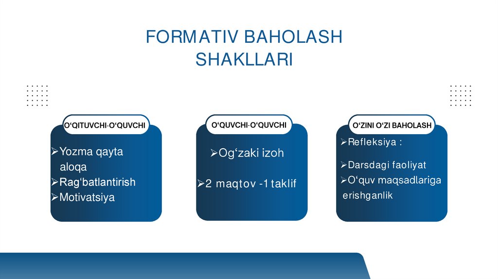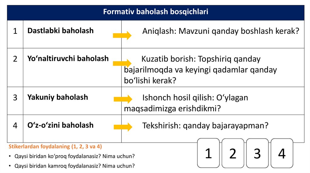 baholash tizimini. Formativ