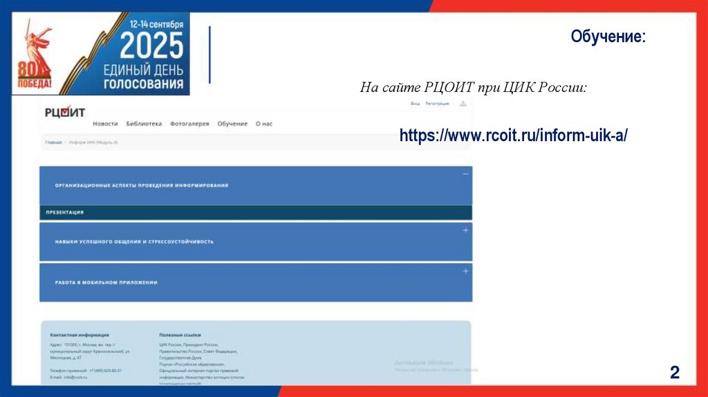 Обучение:На сайте РЦОИТ при ЦИК России: