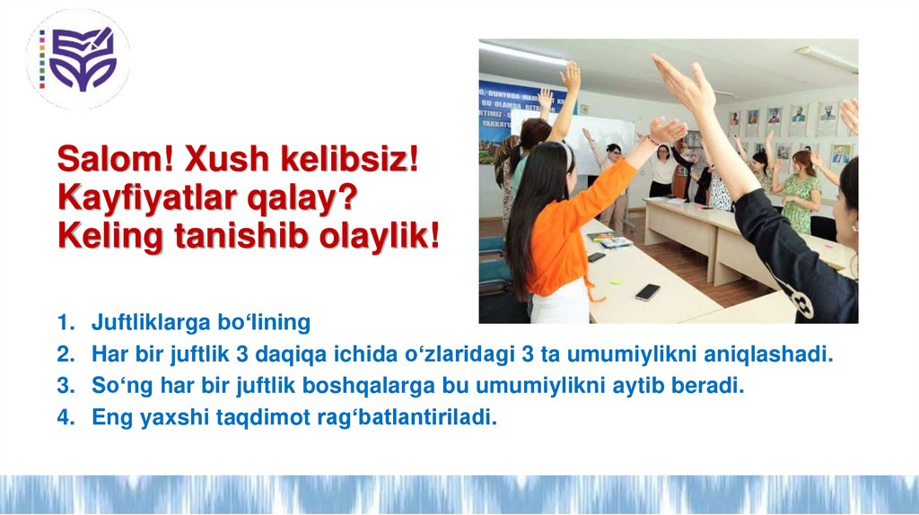 Mashg‘ulotlar davomida faol bo‘lamiz.