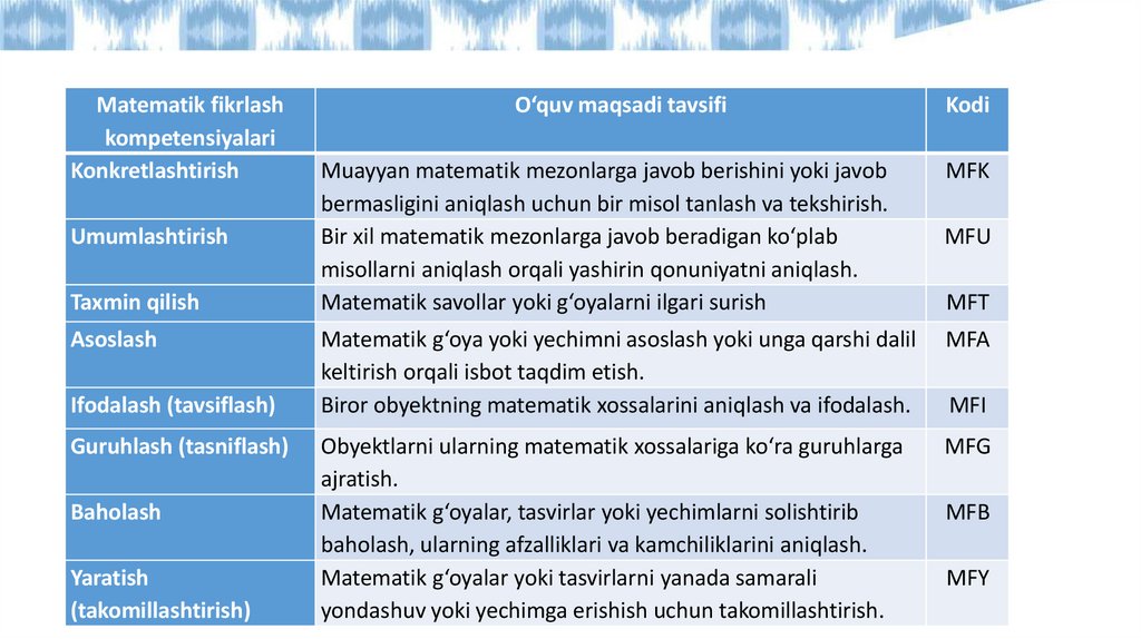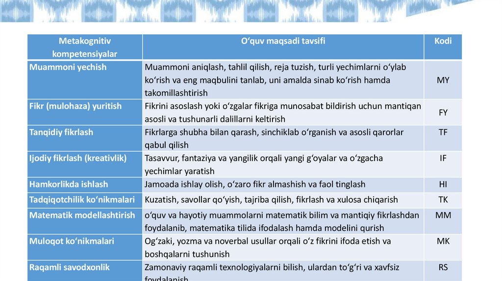 O‘QUV MAQSADLARINING KODLANISHI13.