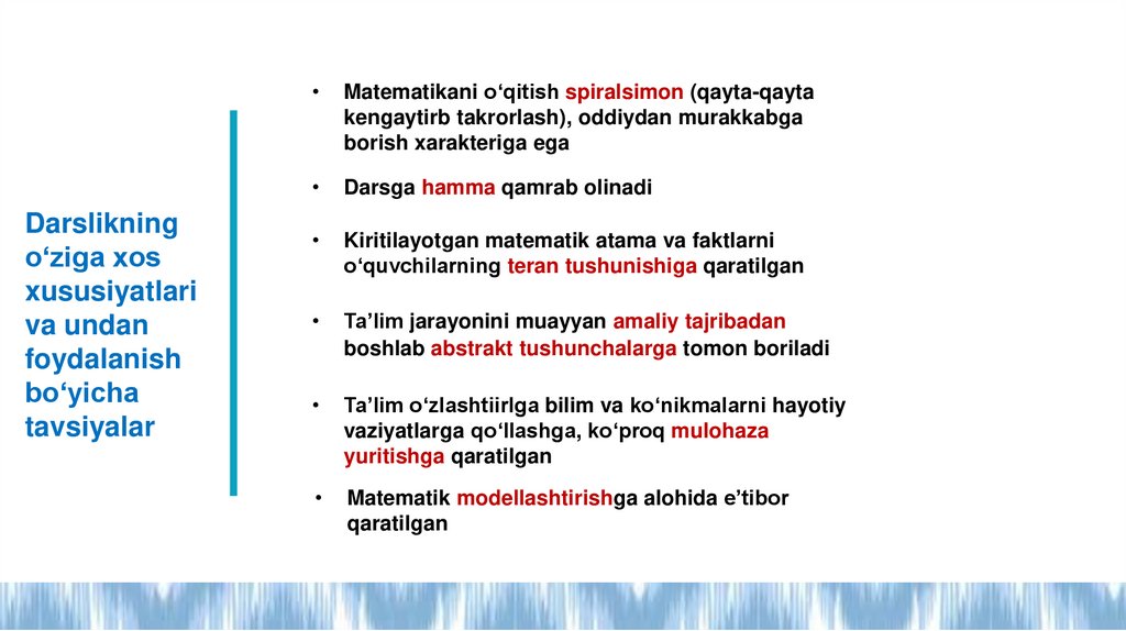 Matematikani o‘qitish spiralsimon (qayta-qayta