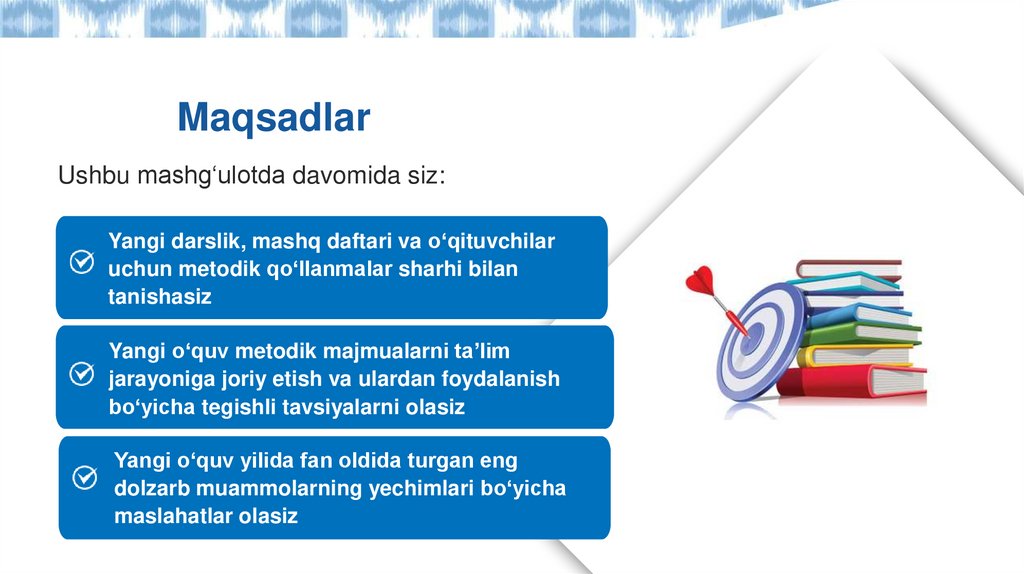 MaqsadlarUshbu mashg‘ulotda davomida siz: