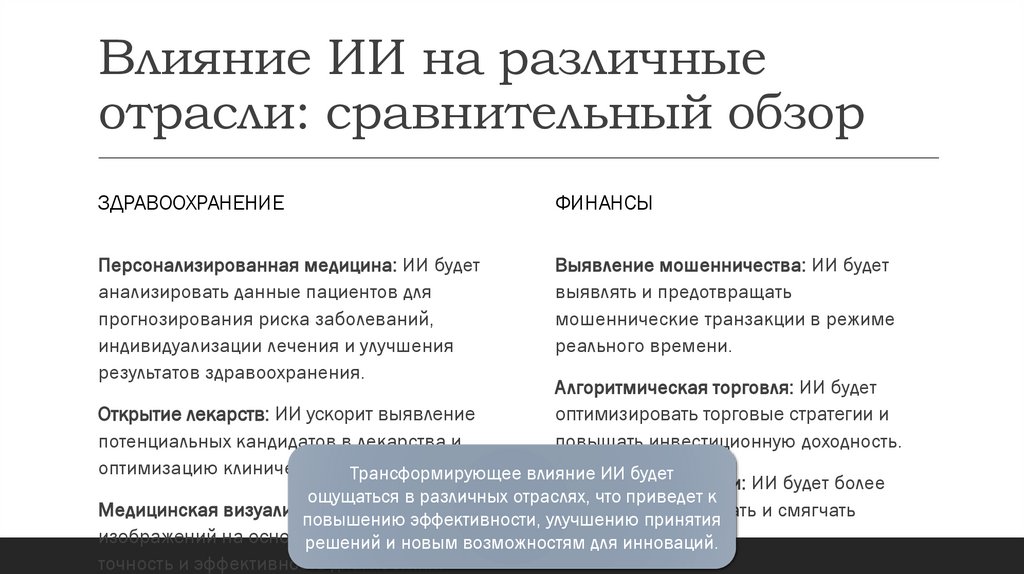 Влияние ИИ на различныеотрасли: сравнительный обзор