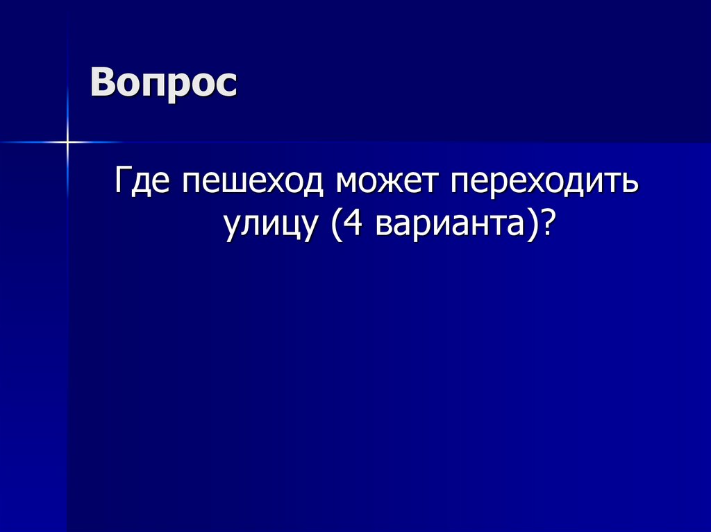 Где пешеход может переходитьулицу (4 варианта)?