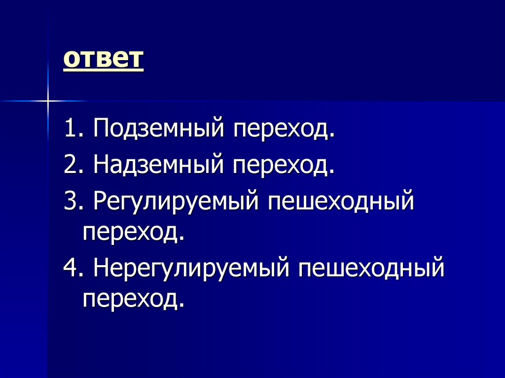 «Надземный переход»7. Вопрос