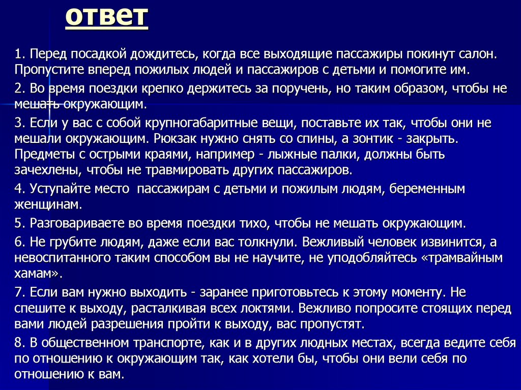 8. В общественном транспорте, как и в других людных местах, всегда ведите себя