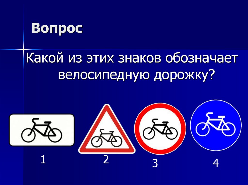Какой из этих знаков обозначаетвелосипедную дорожку?