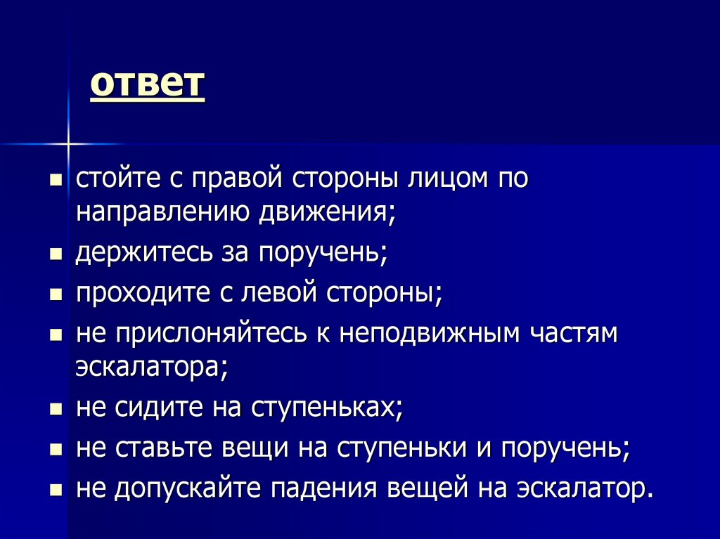 Перечислите правилаповедения на эскалаторе
