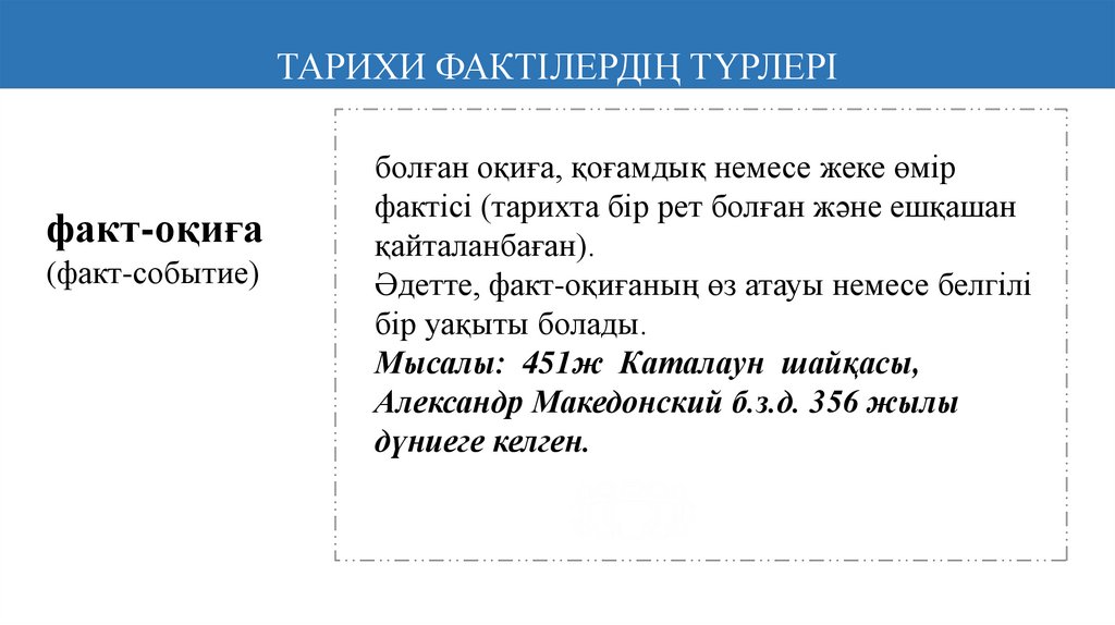 ТАРИХИ ФАКТІЛЕРДІҢ ТҮРЛЕРІфакт-оқиға