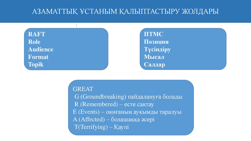 АЗАМАТТЫҚ ҰСТАНЫМ ҚАЛЫПТАСТЫРУ ЖОЛДАРЫ: