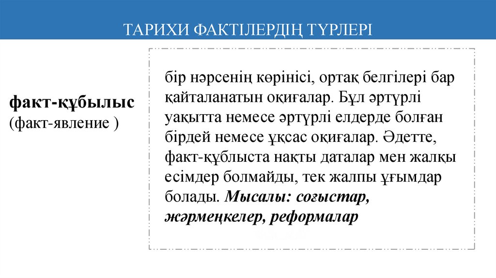 ТАРИХИ ФАКТІЛЕРДІҢ ТҮРЛЕРІфакт-құбылыс