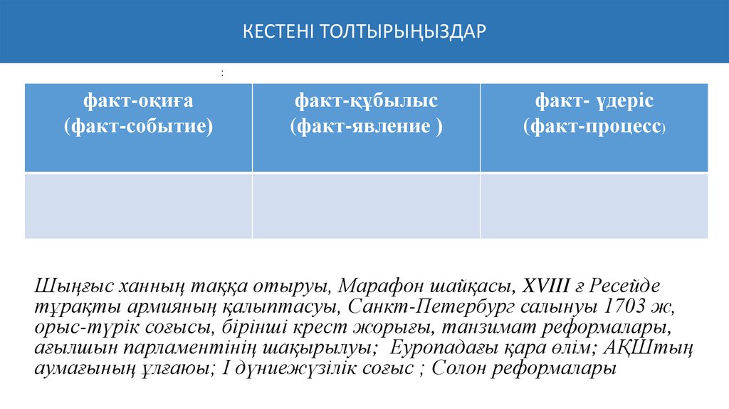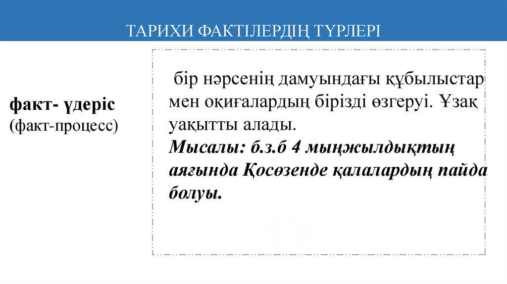 ТАРИХИ ФАКТІЛЕРДІҢ ТҮРЛЕРІфакт- үдеріс