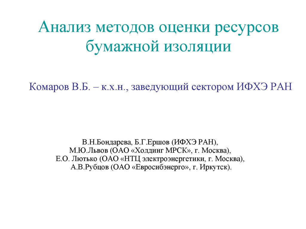 Анализ методов оценки ресурсов бумажной изоляции силовых трансформаторов