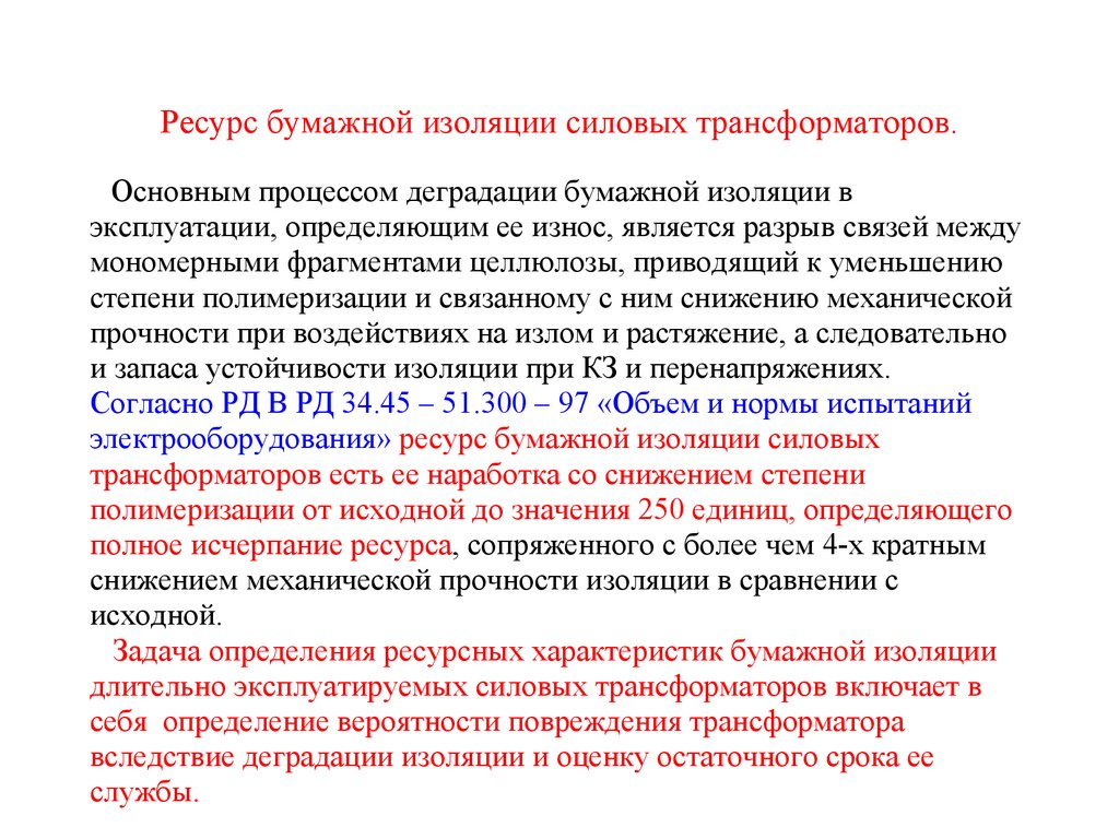 Ресурс бумажной изоляции силовых трансформаторов.Основным процессом деградации бумажной изоляции в