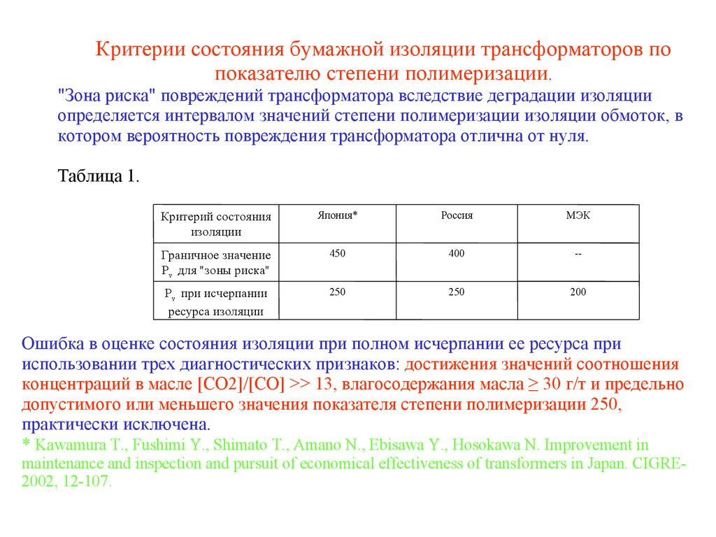 Критерии состояния бумажной изоляции трансформаторов попоказателю степени полимеризации.