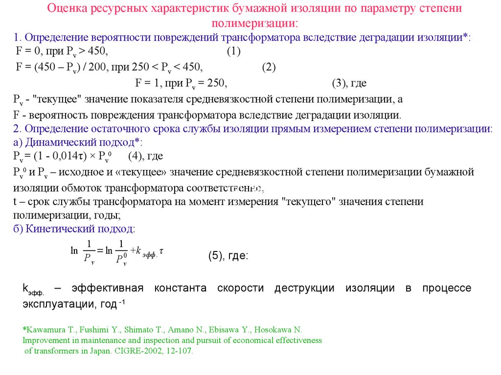 изоляции трансформатора по параметру степени полимеризации. При этом, однако, соотношение