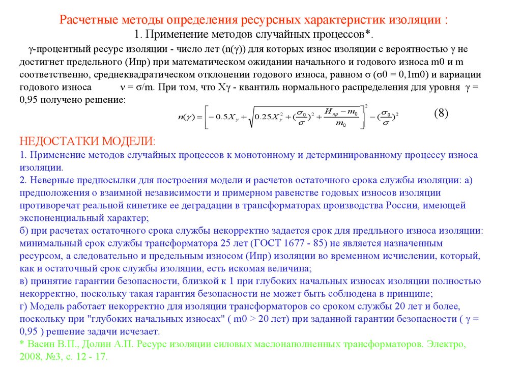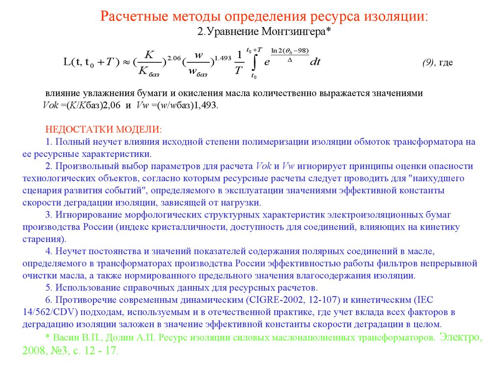 2. Корректная оценка ресурсных характеристик бумажной изоляции трансформатора может
