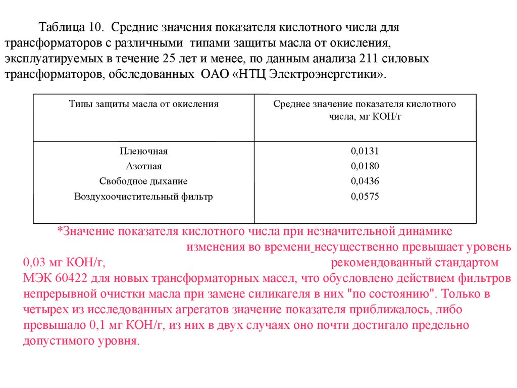 периодических осушках и дегазациях масла трансформаторов в России, значения концентраций