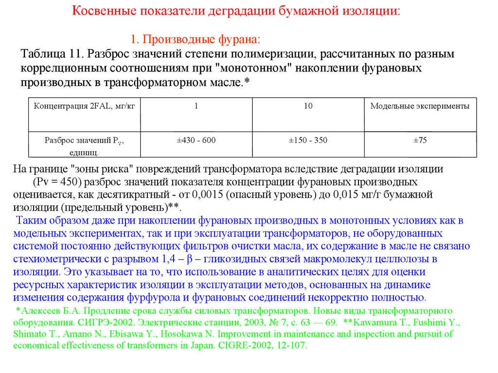 Косвенные показатели деградации бумажной изоляции:1. Производные фурана: