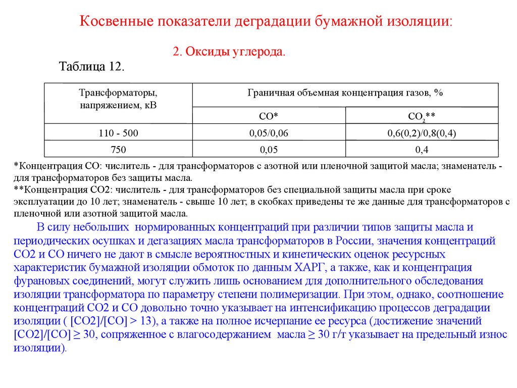 Косвенные показатели деградации бумажной изоляции:2. Оксиды углерода.