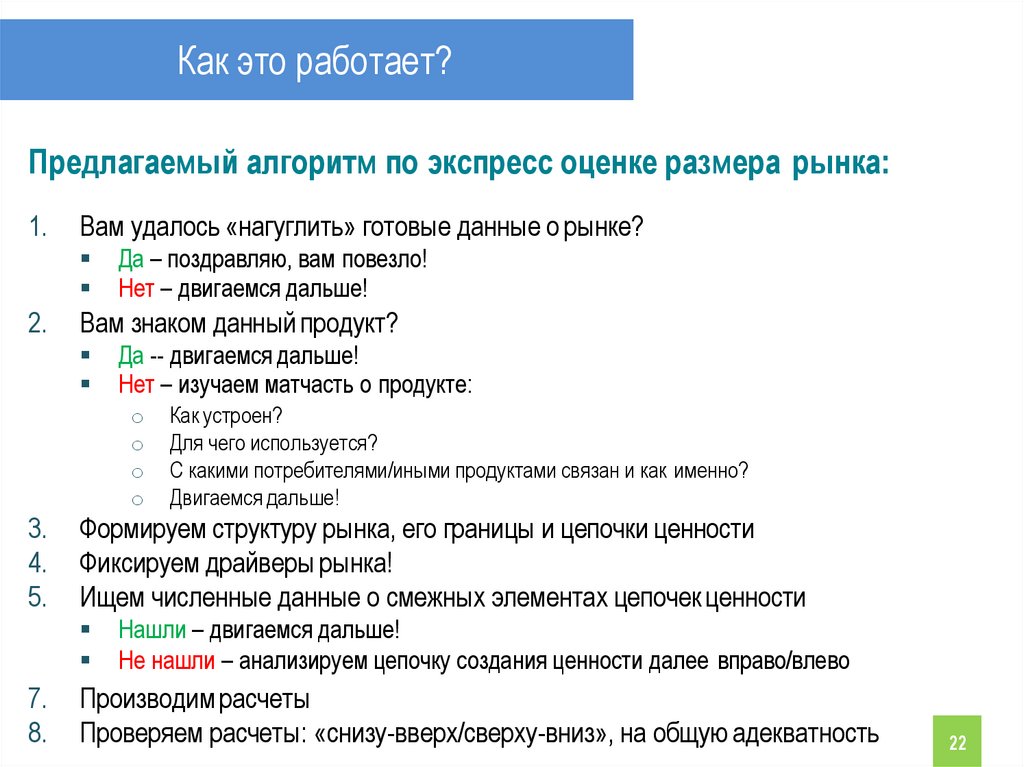 Предлагаемый алгоритм по экспресс оценке размера рынка:1.