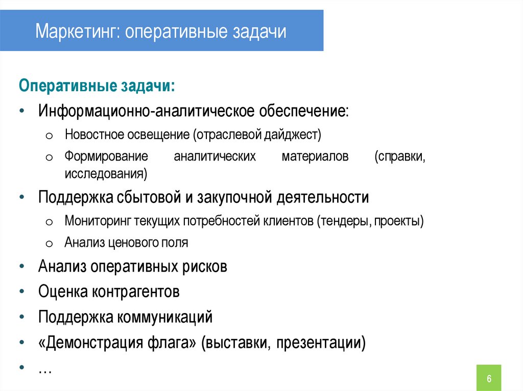 Оперативные задачи:• Информационно-аналитическое обеспечение: