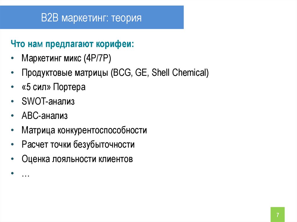 Что нам предлагают корифеи:• Маркетинг микс (4Р/7Р)