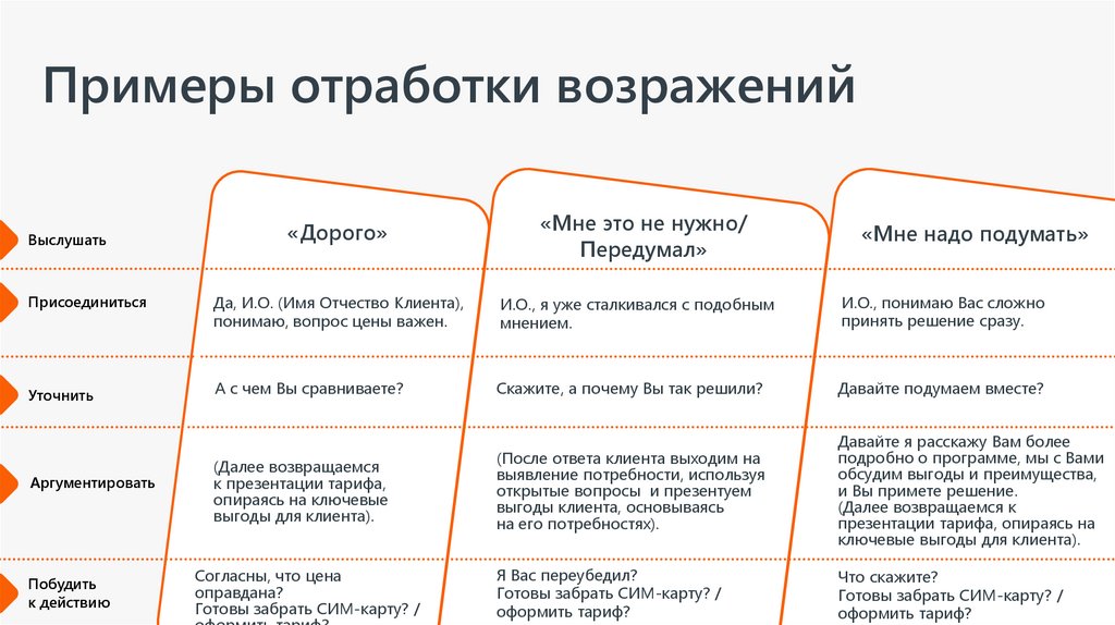 Разобрать возможные возражения клиентов