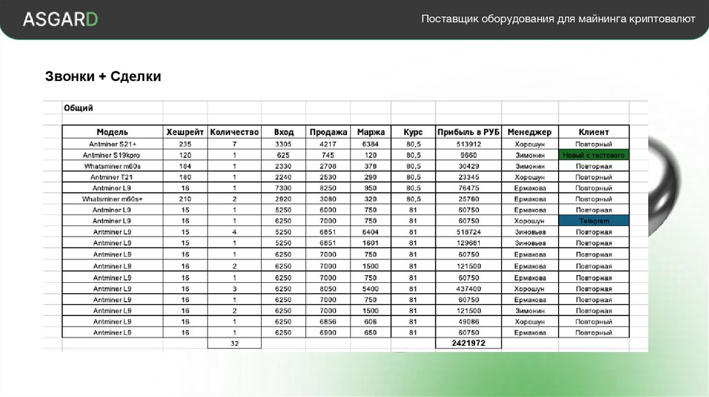Поставщик оборудования для майнинга криптовалютЗвонки + Сделки