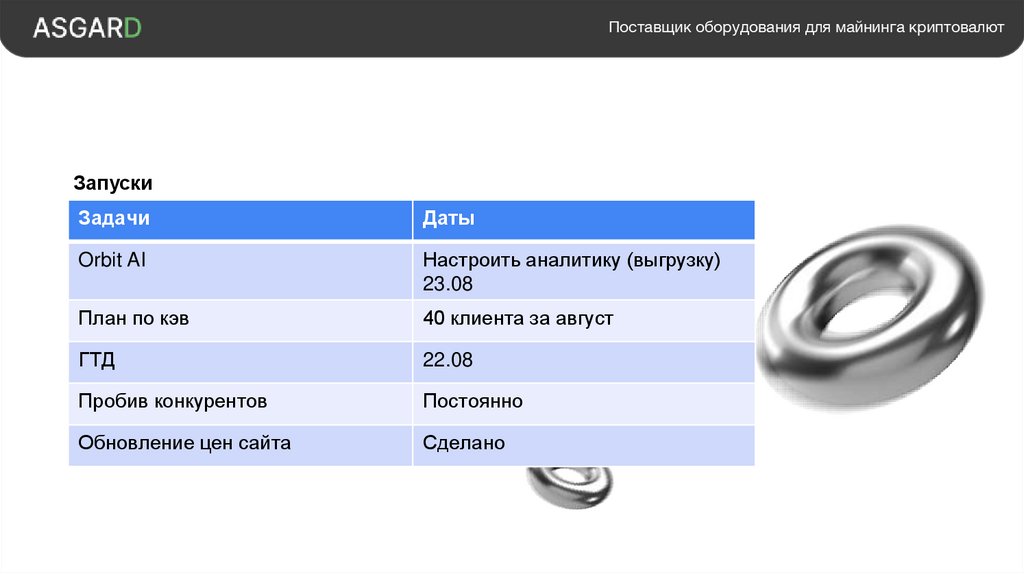 Поставщик оборудования для майнинга криптовалютПлан Август
