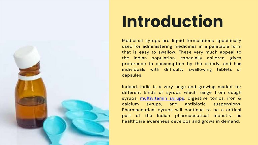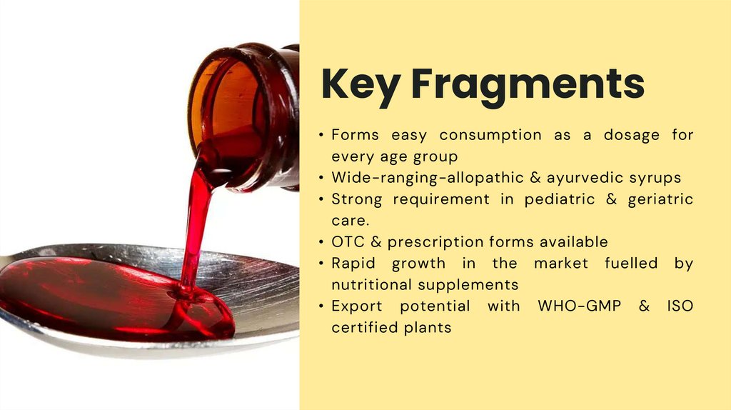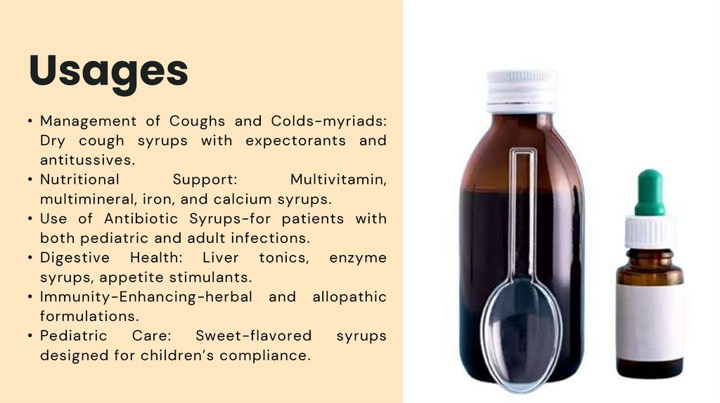 suspensions, liver tonics, and Ayuirvedic formulations.