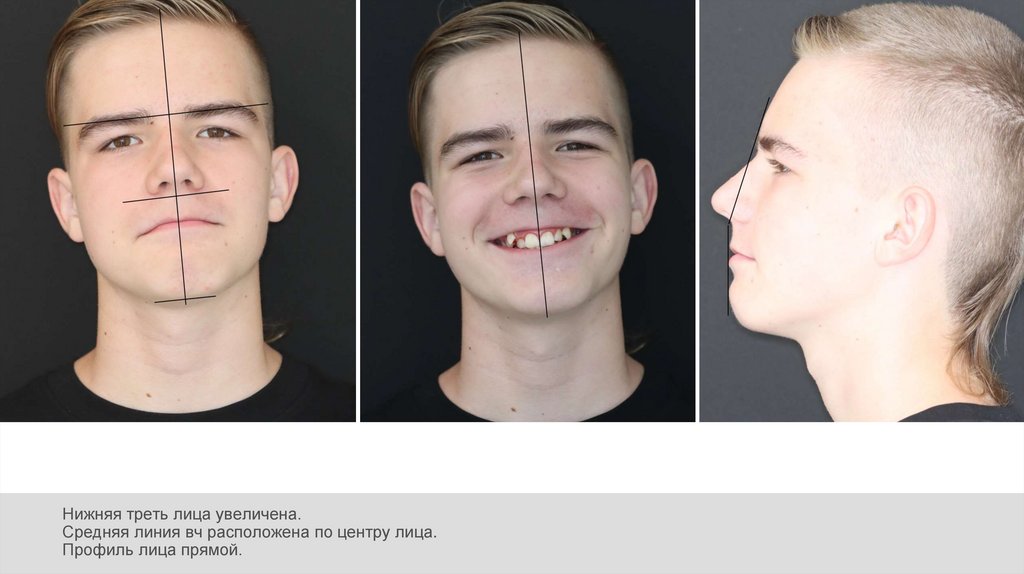 Нижняя треть лица увеличена.Средняя линия вч расположена по центру лица.