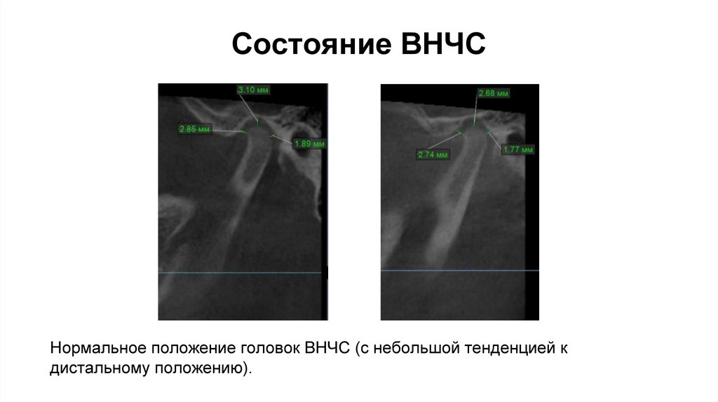 Состояние ВНЧСНормальное положение головок ВНЧС (с небольшой тенденцией к